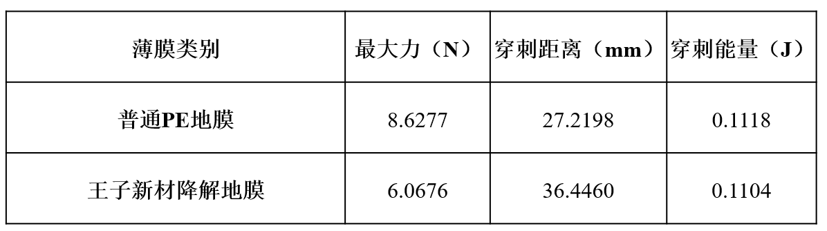 地膜抗穿刺性能比較(播種時打孔需要參照,尤其是穿刺距離和穿刺能量)