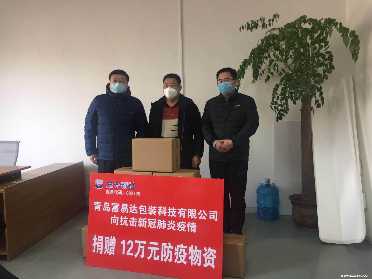 在公司為武漢送去馳援物資的前一天,公司子公司青島富易達(dá)包裝科技有限公司,也向青島市膠州市膠東街道疫情防控指揮部捐贈(zèng)了價(jià)值12萬元的公司自產(chǎn)無線電源產(chǎn)品10箱,解決防控一線工作人員每日在外奔波的充電難題。